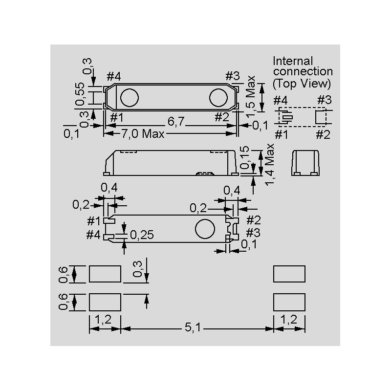 surface mount clock quartz crystals with a frequency of 32,768kHz