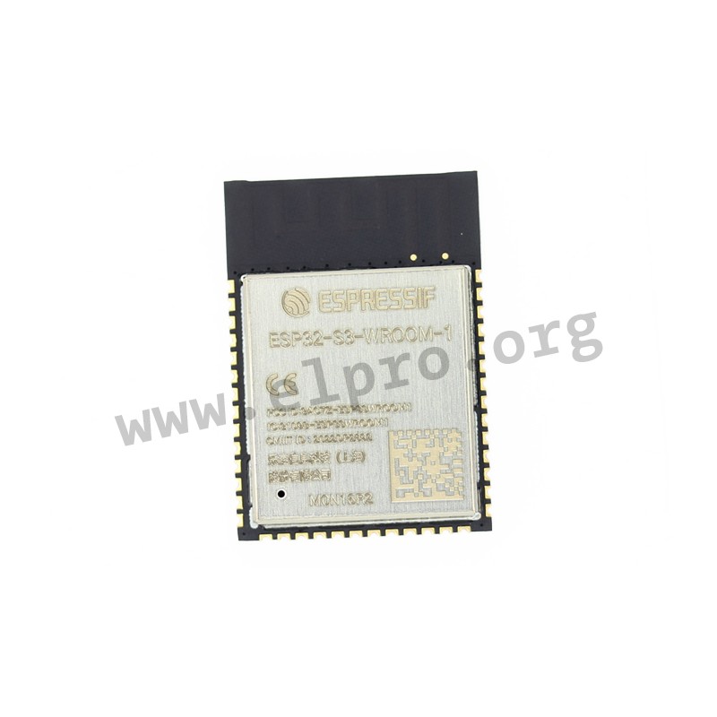 240589 ESP32-S3-WROOM-1-N16R2 ESP32-S3-WROOM-1-N16R2 Espressif WiFi module series ESP. WiFi modules in an SMD design with a frequency of 2,4 to 2,5GHz. These modules conform with IEEE 802.11 b/g/n and they are available in bluetooth types. We offer various types of this Espressif series. supply voltage: 2,7 to 3,6V resp. 3 to 3,6V