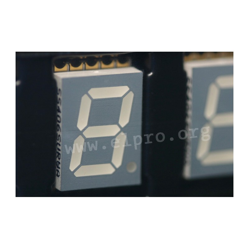 7-segment LED displays in SMD types, with 1 digit, and a common anode. We offer the following types of this Everlight series: SS406SURWA/S530-A4/S und SS405SURWA/S530-A4.