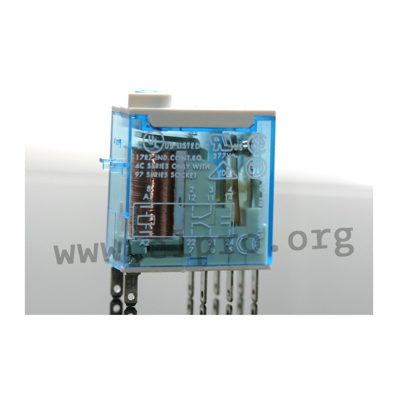Socket mount or direct connection via Faston connectors, AC coils & DC coils sensitive (500mW), and available with lockable test button or mechanical indicator. We offer various types of this Finder series.