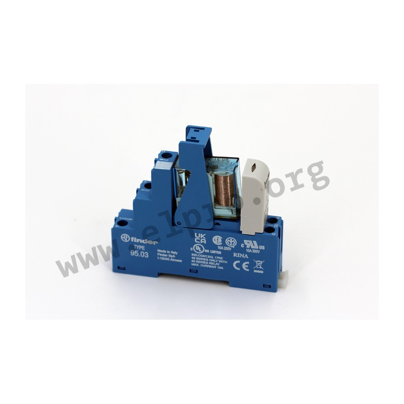 These switching relays with a screw terminal, for carrier rails with 35mm, have one changeover contacts, and 10A. They have a cadmium free contact material, LED screen and EMV interference suppression modules. Thesse devices conform with over voltage category III and relay protection type IP20. We offer the following types of this Finder series: 48.31.7.012.0050 and 48.31.7.024.0050.