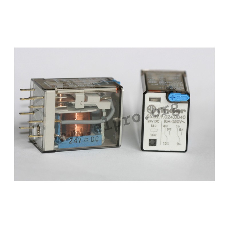 Relais with lockable test button and mechanical flag indicators and solder/plug-in terminals of 2x0.5mm. These relays conform with protection class RTI. We offer various types of this Finder series.