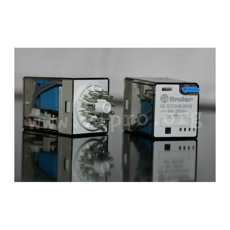 Relais with lockable test buttons with mechanical flag indicator and conforming relays protection class RTI. We offer various types of this Finder series.