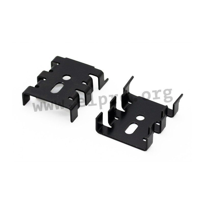 Heatsinks made of black anodised aluminium with a punched hole and a soldering lug for vertical mounting or clip-on heatsinks without a soldering lug (KS 306). We offer various types of this Fischer series.
