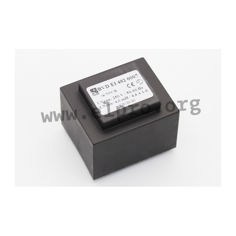 in a potting housing (BVD EI 482 1_) made of a self-extinguishing material or in an open-frame type (BVD EI 482 0_)