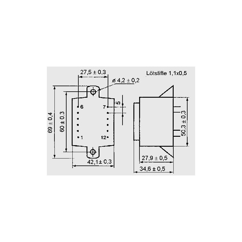 Transformers with an EI48 core an 10VA. These components comply with temperature resistance class Ta 70/B and are not short circuit proof. They are suitable for PCB mounting and are vacuum casted. We offer the following types of this Hahn series: BV EI 481 1167, BV EI 481 1172, BV EI 481 1184, BV EI 481 1185, BV EI 481 1118, BV EI 481 1119, BV EI 481 1120 and BV EI 481 1307.