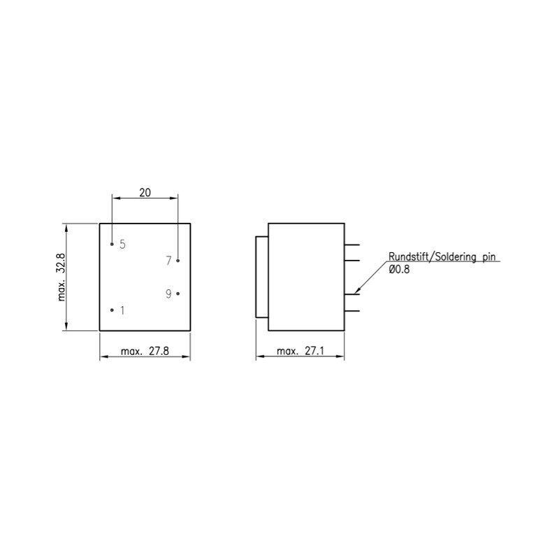 Transformers with 2,1VA and an EI 30 core. These devices are short circuit proof and comply with temperature resistance class Ta 70/F as well as EN61558. They have a low no-load power (<0,4W) and are suitable for PCB mounting. We offer the following types of this Hahn series: BV EI 304 8013 and BV EI 304 8014.