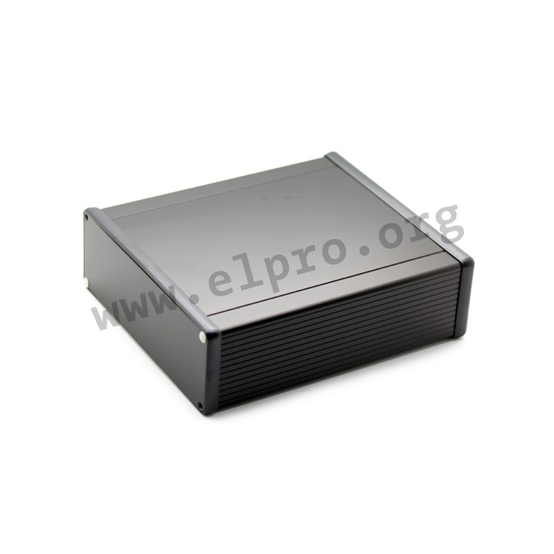 Sturdy extruded enclosures made of aluminium, with an anodized finish, two aluminium end panels and a good EMV transmission performance rating. These enclosures are suitable for the insertion of PCBs (max. 1,5mm) through guiding grooves and are available in diverse dimensions, as well as colour variations. We offer various types of this Hammond series.