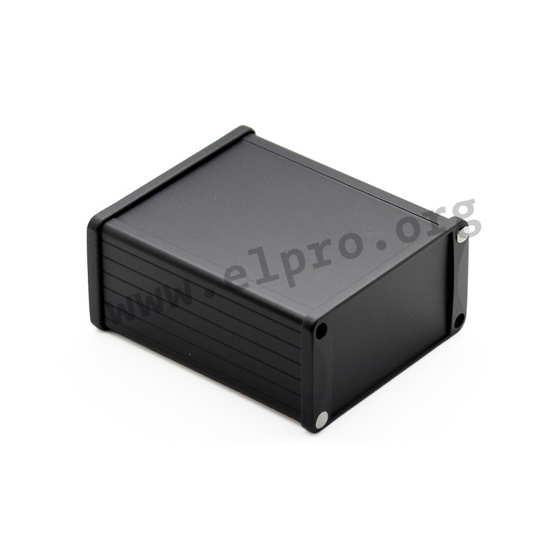 Extruded aluminium enclosures (black powder paint finish or clear anodised) with two aluminium end plates (black) and self-adhesive gaskets. These cases by manufacturer Hammond have a good EMV transmission performance rating and guided grooves for PCB insertion (max. strength 1,5mm). We offer these enclosures with a flanged lid (1457_2/1457_2BK) and without (1457_1/1457_1BK).