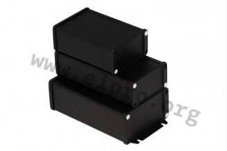 Extruded aluminium enclosures (black powder paint finish or clear anodised) with two aluminium end plates (black) and self-adhesive gaskets. These cases by manufacturer Hammond have a good EMV transmission performance rating and guided grooves for PCB insertion (max. strength 1,5mm). We offer these enclosures with a flanged lid (1457_2/1457_2BK) and without (1457_1/1457_1BK).