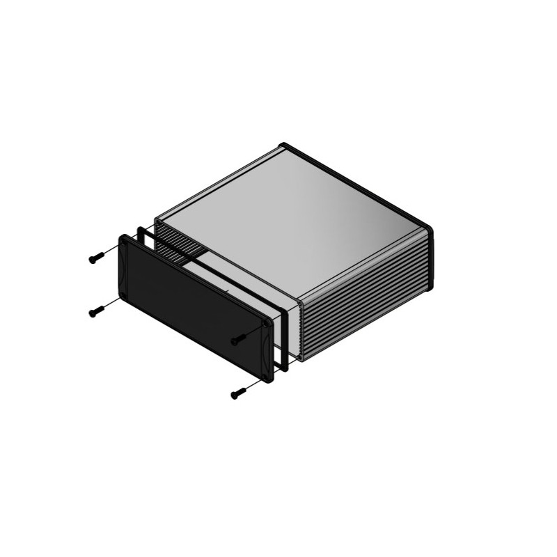 Extruded aluminium enclosures (black powder paint finish or clear anodised) with two aluminium end plates (black) and self-adhesive gaskets. These cases by manufacturer Hammond have a good EMV transmission performance rating and guided grooves for PCB insertion (max. strength 1,5mm). We offer these enclosures with a flanged lid (1457_2/1457_2BK) and without (1457_1/1457_1BK).