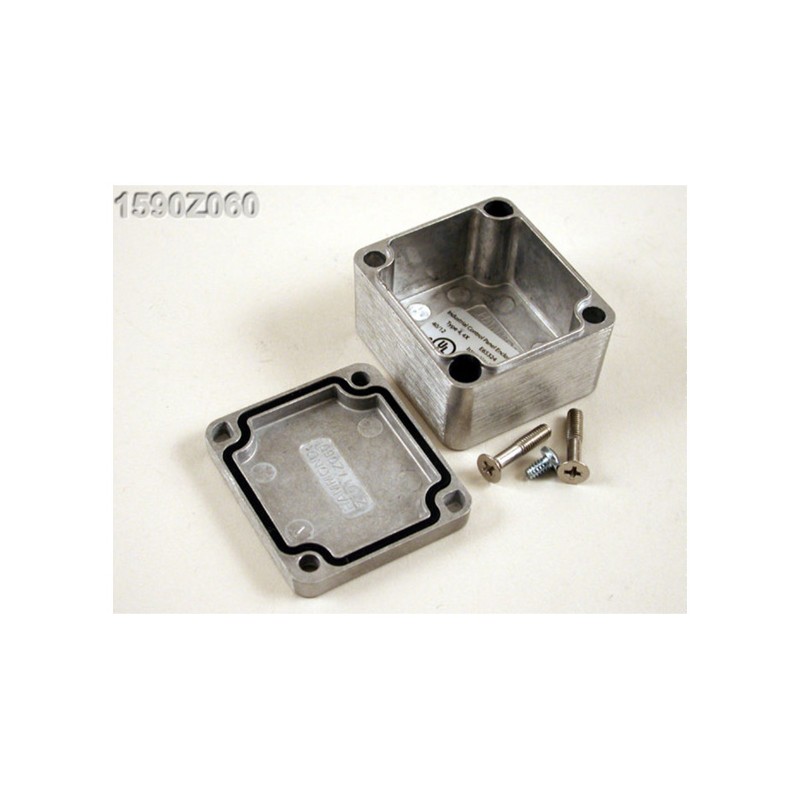 Rugged diecast aluminium enclosures (IP68) suitable for wall mounting. These thick-walled housings have a two piece tongue and groove construction with an exchangeable silicone gasket. The lid is secured with four recessed, self captivating stainless steel screws.