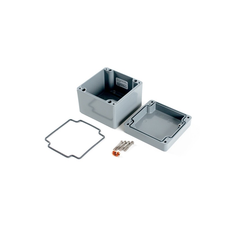 Rugged diecast aluminium enclosures (IP68) suitable for wall mounting. These thick-walled housings have a two piece tongue and groove construction with an exchangeable silicone gasket. The lid is secured with four recessed, self captivating stainless steel screws.