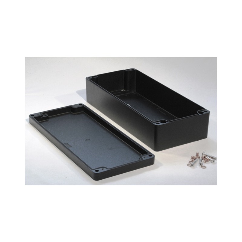 Rugged diecast aluminium enclosures (IP68) suitable for wall mounting. These thick-walled housings have a two piece tongue and groove construction with an exchangeable silicone gasket. The lid is secured with four recessed, self captivating stainless steel screws.