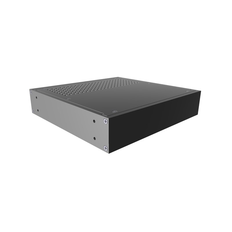 19" Rack-mount housings made of aluminium, in the colour black, and in diverse dimentions. These housings are powder coated, suitable for screw mounting, and are available in a type with ventilation openings (RM_U_VBK). We offer various types of this Hammond series.