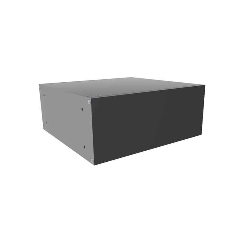 19" Rack-mount housings made of aluminium, in the colour black, and in diverse dimentions. These housings are powder coated, suitable for screw mounting, and are available in a type with ventilation openings (RM_U_VBK). We offer various types of this Hammond series.