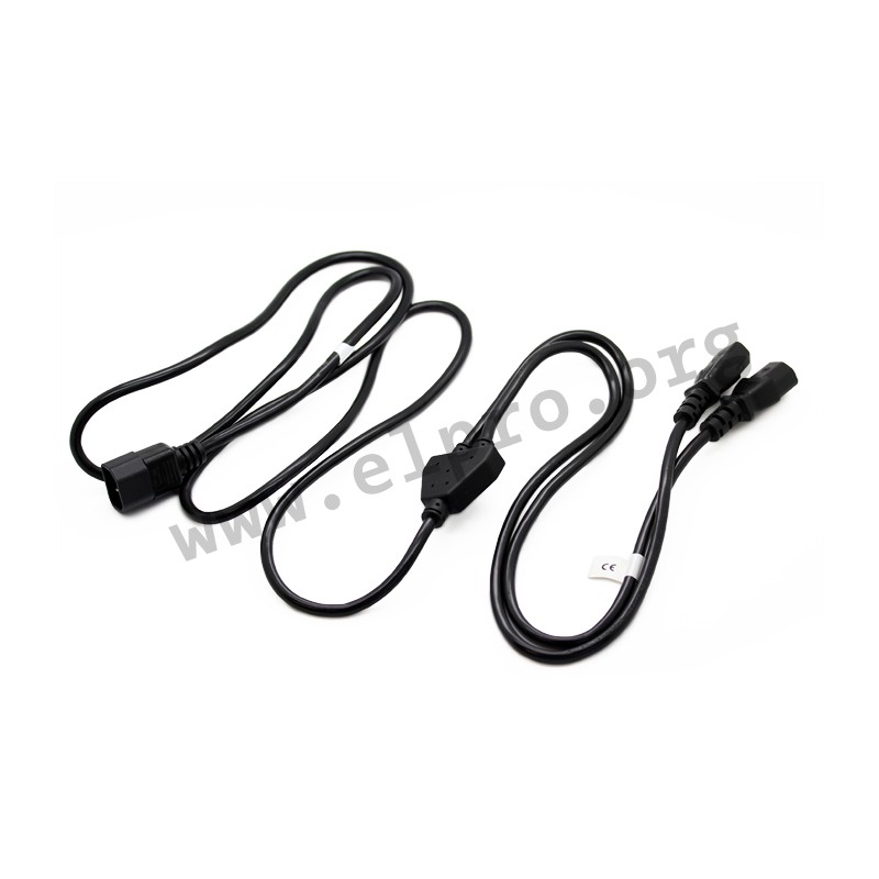 Plastic power cables type H05VV-F3G1,0, moulded angled Schuko plugs and straight (SGK_) resp. angled (SGKA_) appliance connectors according to EN 60320-1/C13 resp. EN60320-1/C19 (SGK C19_) as well as Y cable types with an angled schuko plug (SGKA Y_) or 1xC14 (K Y_) and 2xC13 connectors. These power supply cables have a double earth contact (16A/250V) and kink protection on both sides. We offer various types of this Hawa series.