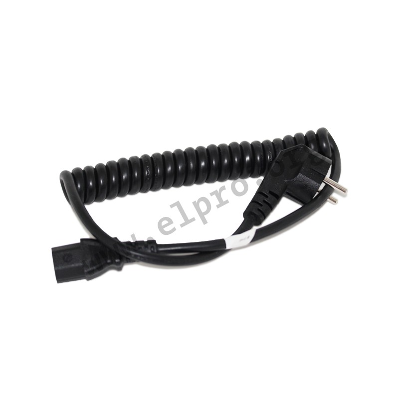 coiled cords with an IEC connector C13 and an angled Schuko plug
