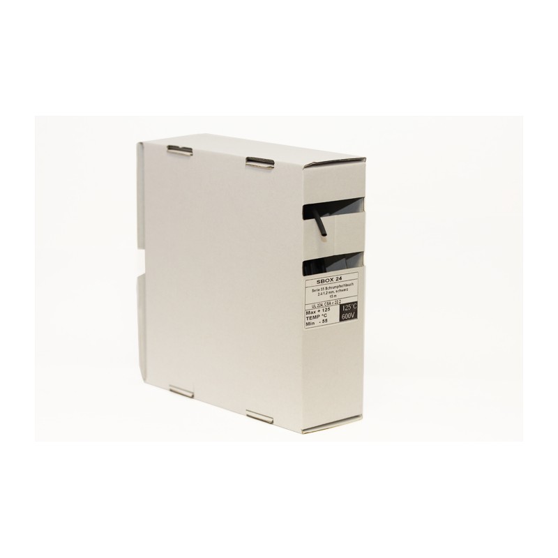 Thin walled radiation-interlaced polyolefin-shrinkable tubing in dispenser boxes of 5, 8, or 10m. These tubings have a schrinkage rate of 2:1 and they are self-extinguishing, as well as flame retardant. We offer diverse types of this series.