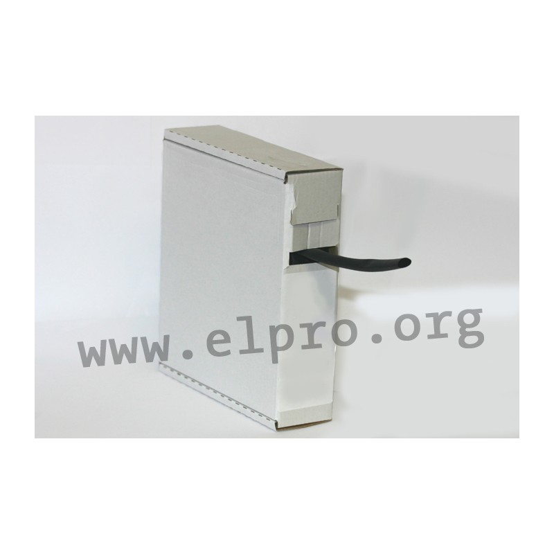 29747 S 9,5mm 2:1 8m schwarz SBOX95 SBOX95 polyolefin heat-shrinkable tubing series SBOX. Thin walled radiation-interlaced polyolefin-shrinkable tubing in dispenser boxes of 5, 8, or 10m. These tubings have a schrinkage rate of 2:1 and they are self-extinguishing, as well as flame retardant. We offer diverse types of this series. continuous operating temperature: -55 to +125°C minimum shrink temperature: 120°C dielectric strength, min.: 20kV/mm