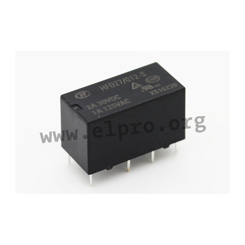 Subminiature signal relays with the contact form DPDT (2 form C) and the contact material AgNi (Au plated). These relays have a high sensitivity (200mW), a switching current of 2A and are epoxy sealed for automatic cleaning wave soldering. We offer the types HDF27/005-S, HDF27/012-S and HDF27/024-S of this series.