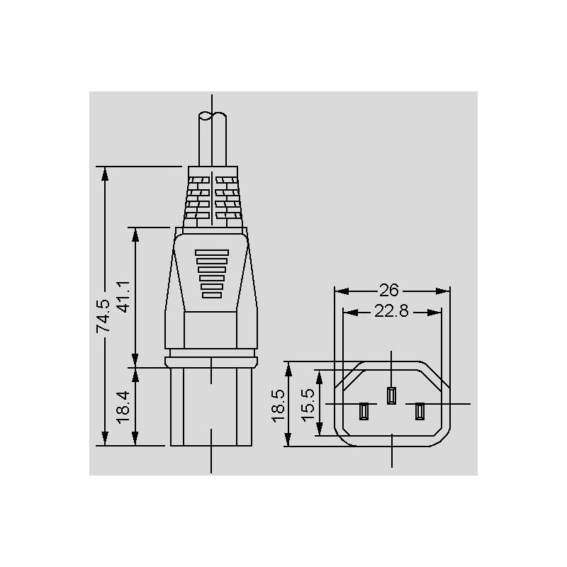 • straight appliance connector EN 60320-1/C13, 10A, 250V