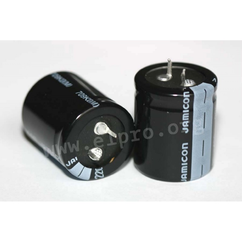 Electrolytic capacitors for up to 105°C, with snap-in connection. We offer various types of this Jamicon series.
