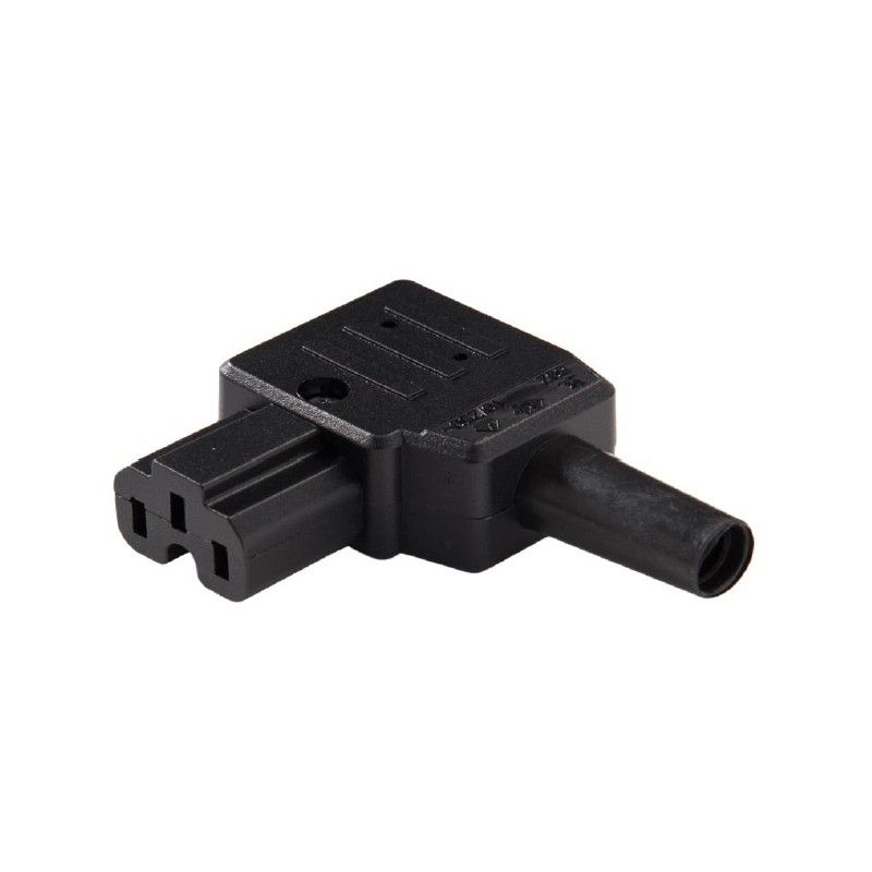 Hot appliance sockets made of black Polyamid (PA) 6 and for screw mounting. They have a brass input, a angled alignment, and a contact of type C15A. We offer the 892/SW type of this Kaiser series.