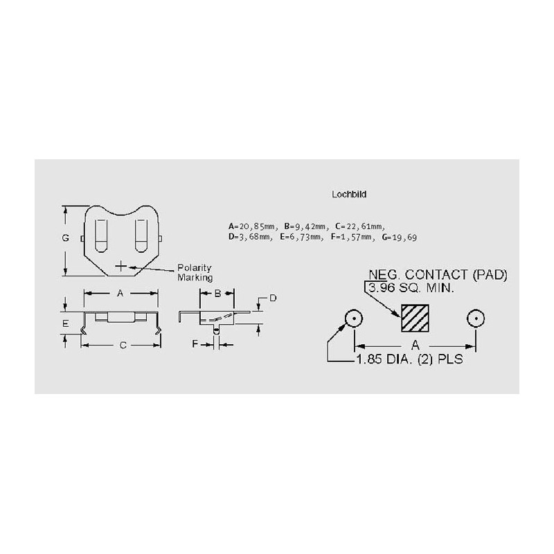 * button cell clips for PCB mounting• for 16 to 20mm diameter cells