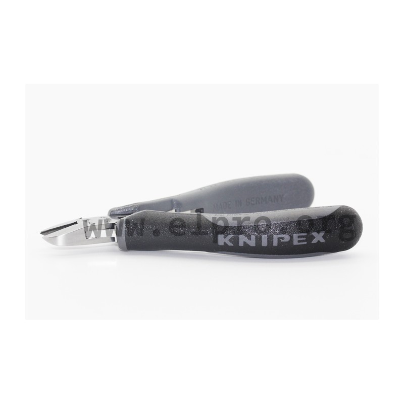 Diagonal cutters with different heads, bevels and cutting capacities for fine cutting work, for example in electronics and fine mechanics. The tools are made of forged and multi stage oil-hardened high-grade special tool steel and have a a sturdy, zero-backlash box joint and a low-friction double spring for gentle and even opening. The cutting edges are additionally induction hardened and the handles have multi-component grips. The ESD versions have electrically discharging handles (dissipative) handles and meet standards IEC TR 61340-5 and DIN EN 61340-5. We are offering the following types by manufacturer Knipex: 77 02 115, 77 22 115, 77 42 115, 77 72 115, 76 22 125, 77 42 130, 77 02 115 ESD, 77 22 115 ESD, 77 42 115 ESD and 77 72 115 ESD.