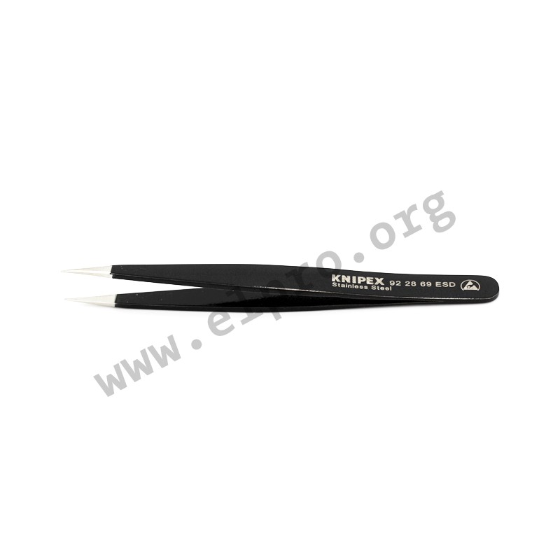 Discover our high-quality ESD precision tweezers (92_ ESD) and plastic tweezers (92 69 84). The ESD version features matt finished gripping surfaces, while the plastic option boasts serrated handles for optimal grip. Designed specifically for electronics, both types of tweezers are ideal for delicate tasks. With a length of 130mm, these tools provide precise handling and control in any situation. Upgrade your toolkit with our reliable and versatile tweezers today!