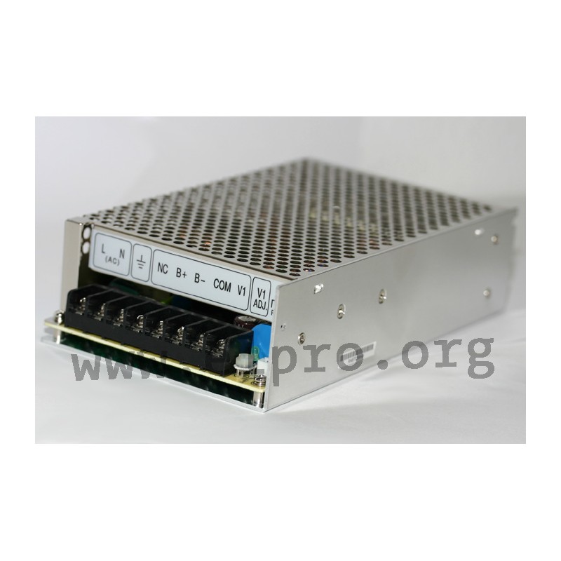 Switching power supplies in an enclosed housing with 150W, a battery charger, screw terminals, a battery low protection and a universal input. These devices have a UPS function and are protected against overload (auto recovery), overvoltage as well as short circuit. They have a fanless design and comply with UL/EN62368-1, EN55032 class B, EN61000-3-2 as well as EN61000-3-3. We offer the following types of this Mean Well series: AD-155 A, AD-155 B and AD-155 C.