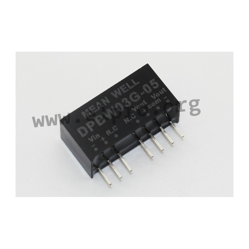 Regulated DC/DC converters in a SIL8 housing with 3W, an input voltage ratio of 4:1 and a built-in remote ON/OFF control. These devices are suitable for PCB mounting and are protected against overload, input undervoltage as well as short circuit (continuous). They require no minimum load and comply with EN55032 class B. We offer the following types of this Mean Well series: DPBW03F-05, DPBW03F-12, DPBW03F-15, DPBW03G-05, DPBW03G-12 and DPBW03G-15.