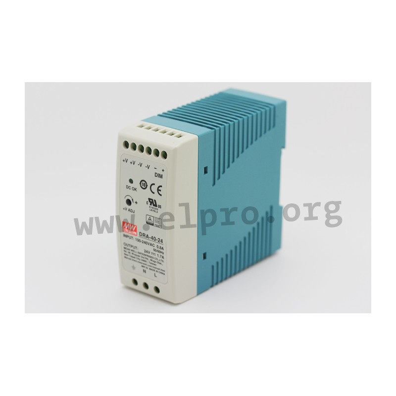 Switching power supplies with 40W, a universal input, screw terminals (touch guard) and an LED indicator for power on. These devices are suitable for DIN rail mounting and are protected against overload (auto recovery), overvoltage as well as short circuit. They have both an adjustable output voltage as well as an adjustable output current and comply with UL/EN62368-1, EN55032 class B, EN61000-3-2 as well as EN61000-3-3. We offer the following types of this Mean Well series: DRA-40-12 and DRA-40-24.