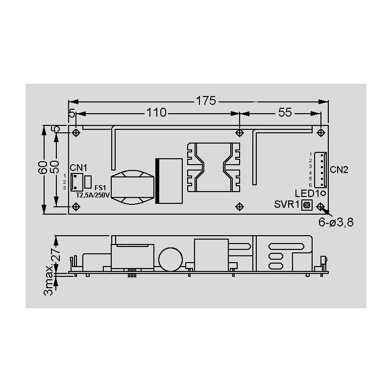 Open frame type switching power supplies with 75W, a universal input and a low no-load power. These devices have a built-in active PFC function and are protected against overload (auto recovery), overvoltage as well as short circuit. They have a pin strip connection for nylon crimp terminals and comply with UL/EN62368-1, EN55032 class B, EN61000-3-2 as well as EN61000-3-3. We offer the following types of this Mean Well series: ELPS-75-3.3, ELP-75-5, ELP-75-12, ELP-75-15, ELP-75-24, ELP-75-36 and ELP-75-48.