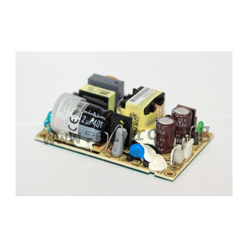 Switching power supplies in a compact housing (open frame, 3"x2") with 35W, a universal input and a low no-load power. These devices have PC pins for nylon-crimp terminals and are protected against overload (auto recovery), short circuit as well as overvoltage. They have a fanless design and comply with UL/EN62368-1, EN55032 class B, EN61000-3-2 as well as EN61000-3-3. We offer the following types of this Mean Well series: EPS-35-3.3, EPS-35-5, EPS-35-7.5, EPS-35-12, EPS-35-13.5, EPS-35-15, EPS-35-24, EPS-35-27, EPS-35-36 and EPS-35-48.