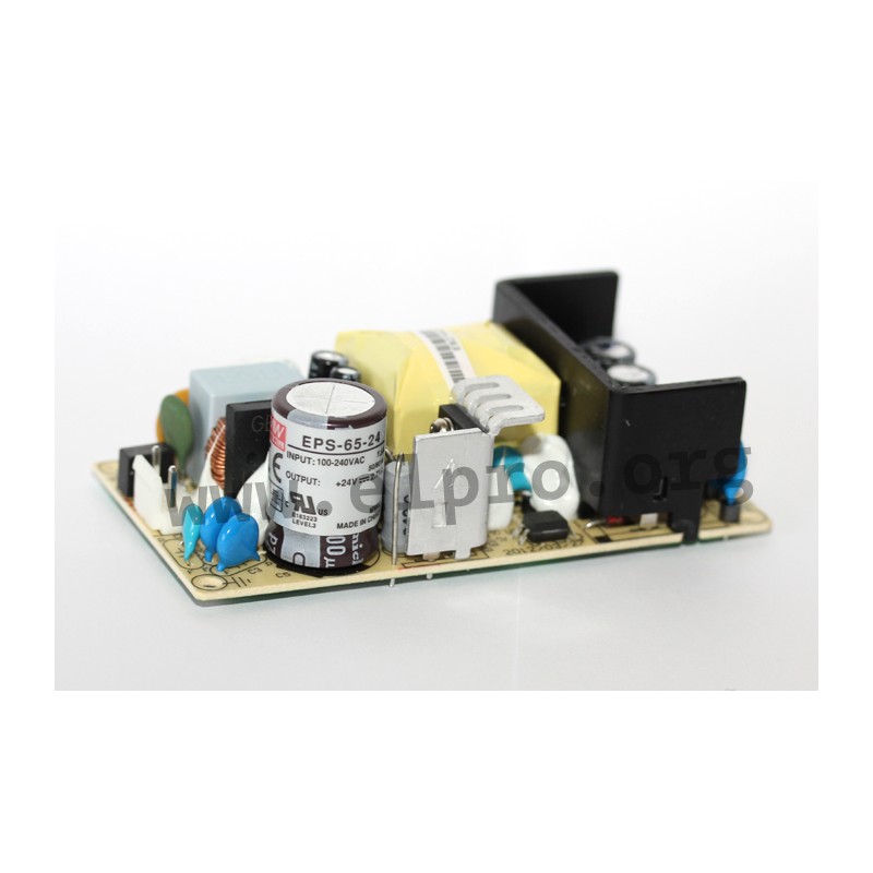 Switching power supplies in a compact 4"x2" housing (open frame) with 65W, a universal input, a low no-load power and a pin strip connection for nylon crimp terminals. These devices are suitable for an operating altitude of up to 4000m and are protected against overload (auto recovery), overvoltage as well as short circuit. They have a fanless design and comply with EN62368-1, EN55032 class B as well as EN61000-3-2. We offer the following types of this Mean Well series: EPS-65-3.3, EPS-65-5, EPS-65-7.5, EPS-65-12, EPS-65-15, EPS-65-24, EPS-65-36 and EPS-65-48.