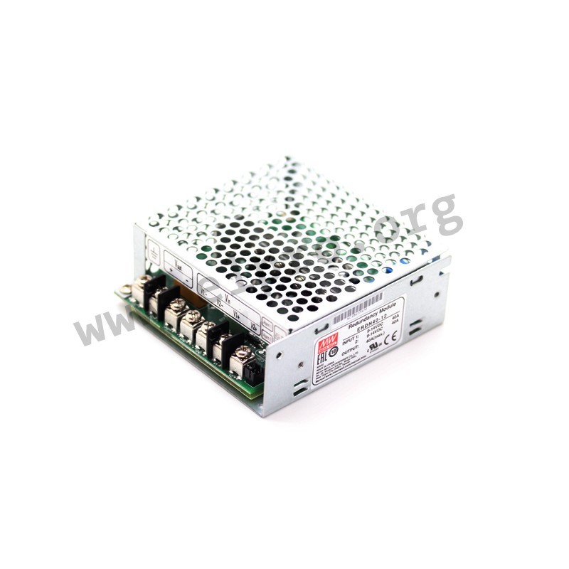 Redundancy modules in an enclosed housing with 40A, an LED indicator, a 1 channel input, a 2 channel output and a DC OK signal / alarm relay contact. These devices support 1+1 as well as N+1 redundancy modules and are protected against overload as well as short circuit. They have a fanless design, are suitable for DIN rail mounting and comply with UL62368-1, EN55032 class B as well as EN61000-4-2. We offer the following types of this Mean Well series: ERDN40-12, ERDN40-24 and ERDN40-48.