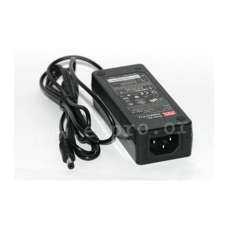 Desktop switching power supplies in a plastic housing with 60W, energy efficiency Level V, a universal input, an LED indicator for power on, insulation class I and a low no-load power (<0,3W). These devices are protected against overload, overtemperature, overvoltage as well as short circuit and comply with EN60950-1, EN55022 class B, EN61000-3-2 as well as EN61000-3-3. We offer the type GS60A48-P1J of this Mean Well series.