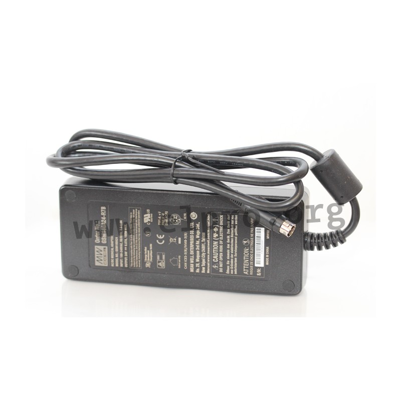 Desktop switching power supplies with 160W, a universal input, an LED indicator for power on, insulation class I and energy efficiency Level VI. These devices are suitable for medical technology applications (2xMOPP) and are protected against overload, overtemperature, overvoltage as well as short circuit. They have a low no-load power (<0,15W) and comply with EN60601-1, EN55011 class B, EN61000-3-2 as well as EN61000-3-3. We offer the following types of this Mean Well series: GSM160A12-R7B, GSM160A15-R7B, GSM160A20-R7B, GSM160A24-R7B and GSM160A48-R7B.