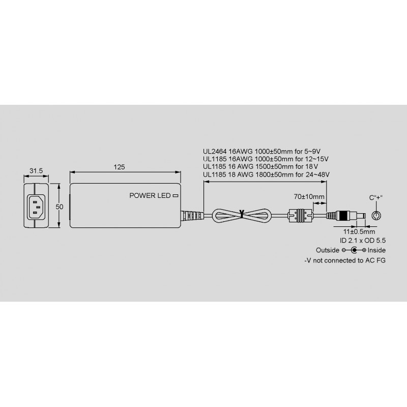 Desktop switching power supplies in a plastic housing with 60W, a universal input, insulation class I, energy efficiency Level VI, an LED indicator for power on and a low no-load power. These devices are protected against overload, overtemperature, short circuit as well as overvoltage and comply with EN62368-1 as well as EN55032 class B. We offer the following types of this Mean Well series: GST60A05-P1J, GST60A07-P1J, GST60A09-P1J, GST60A12-P1J, GST60A15-P1J, GST60A18-P1J, GST60A24-P1J and GST60A48-P1J.