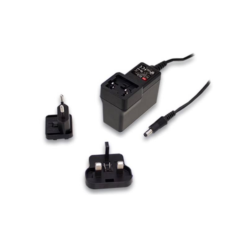 LED plug-in switching power supplies with 60W, protection class II, a universal input, a constant voltage and a low no-load power. These devices have a built-in active PFC function and are protected against overload (auto recovery), overvoltage as well as short circuit. They are suitable for LED lighting applications, have interchangeable input plugs and comply with EN61347-1 as well as EN61347-2-13. We offer the following types of this Mean Well series: GSV60I12-P1J, GSV60I24-P1J and GSV60I48-P1J.