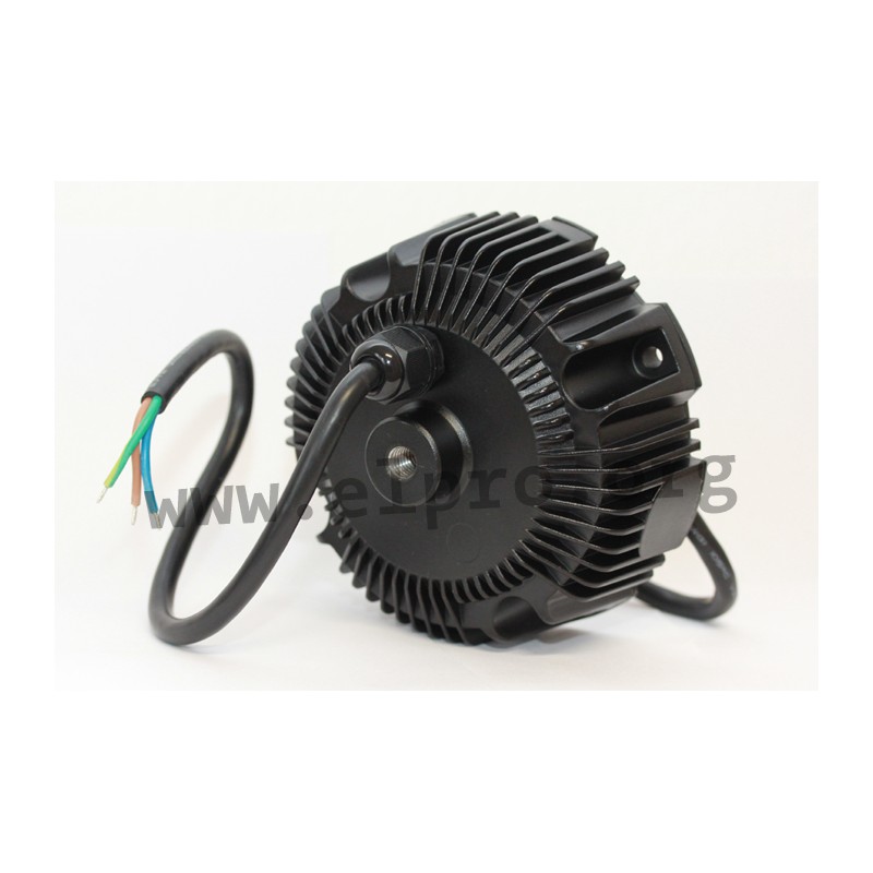 LED drivers in a round metal housing (IP65) with a constant current, 100W and a built-in active PFC function. These SELV compliant devices are protected against overload (auto recovery), overtemperature, overvoltage as well as short circuit, are suitable for LED lighting applications and are not dimmable. They comply with EN61347-1, EN61347-2-13, EN55015, EN61000-3-2 class C, EN61000-3-3 as well as EN61547 and have a built-in potentiometer for adjusting the current limitation. We offer the following types of this Mean Well series: HBG-100-36A, HBG-100-48A and HBG-100-60A.