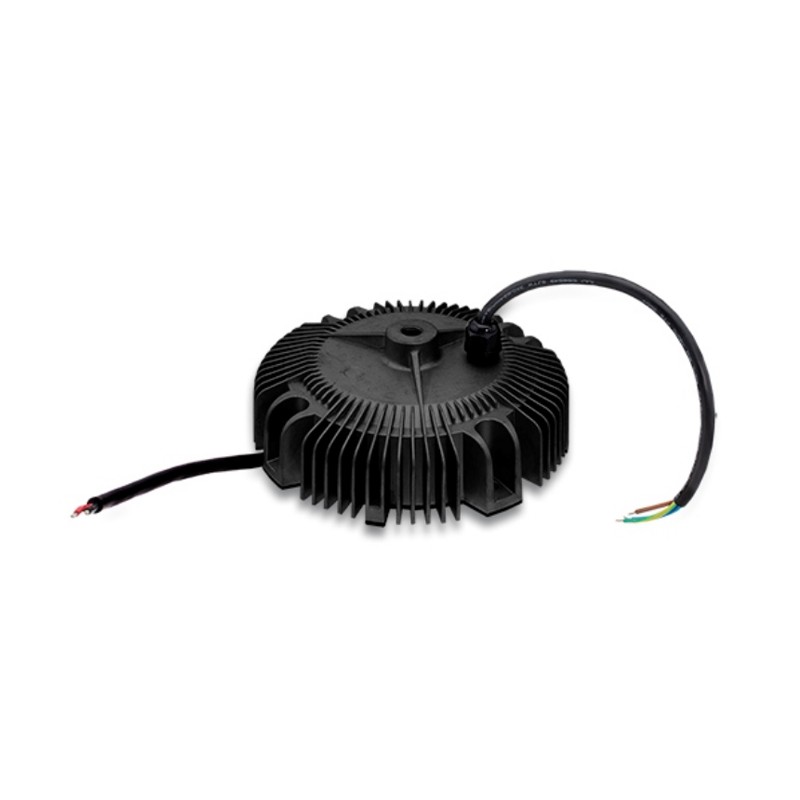 LED drivers in a circular metal housing (IP67) with 240W, a constant current/voltage and a fixed output current (fixed preset). These SELV compliant devices have a built-in active PFC function and are protected against overload (auto recovery), overvoltage, short circuit as well as overtemperature. These devices are suitable for LED lighting applications, are not dimmable and comply with EN61347-1, EN61347-2-13, EN55015, EN61000-3-2 class C, EN61000-3-3 as well as EN61547. We offer the following types of this Mean Well series: HBG-240-24, HBG-240-36, HBG-240-48 and HBG-240-60.