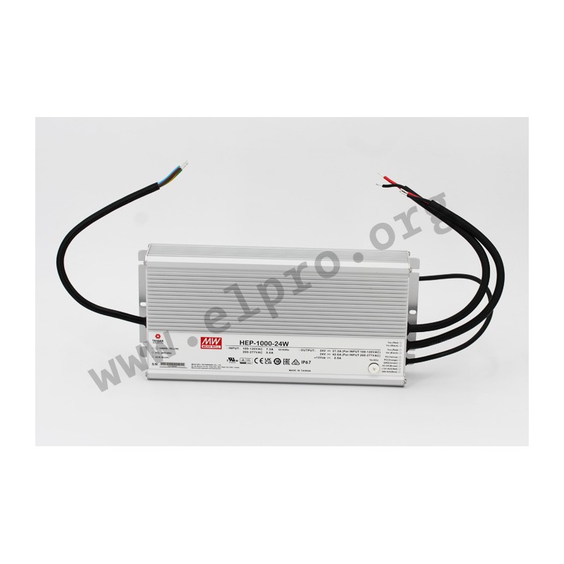 Switching power supplies in an enclosed aluminium housing with 1000W, a PMBus interface, a remote ON/OFF control, an LED indicator for power on, a fanless design and a universal input. These devices have a built-in active PFC function and are protected against overload (auto recovery), overtemperature, overvoltage as well as short circuit. They are suitable for harsh environments and comply with EN62368-1 as well as EN55032 class B. We offer the following types of this Mean Well series: HEP-1000-24, HEP-1000-24W, HEP-1000-48, HEP-1000-48W, and HEP-1000-100.