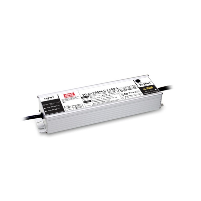 LED drivers in a metal housing (IP65) with 200W, a constant current, a high output voltage, a 3 in 1 dimming function and a potentiometer for adjusting the current limit. These devices have a built-in active PFC function and are protected against overload (auto recovery), overvoltage, short circuit as well as overtemperature. They are suitable for LED lighting applications and comply with EN55015, EN61000-3-2 class C, EN61000-3-3 as well as EN61547. We offer the following types of this Mean Well series: HLG-185H-C500AB, HLG-185H-C700AB, HLG-185H-C1050AB and HLG-185H-C1400AB.