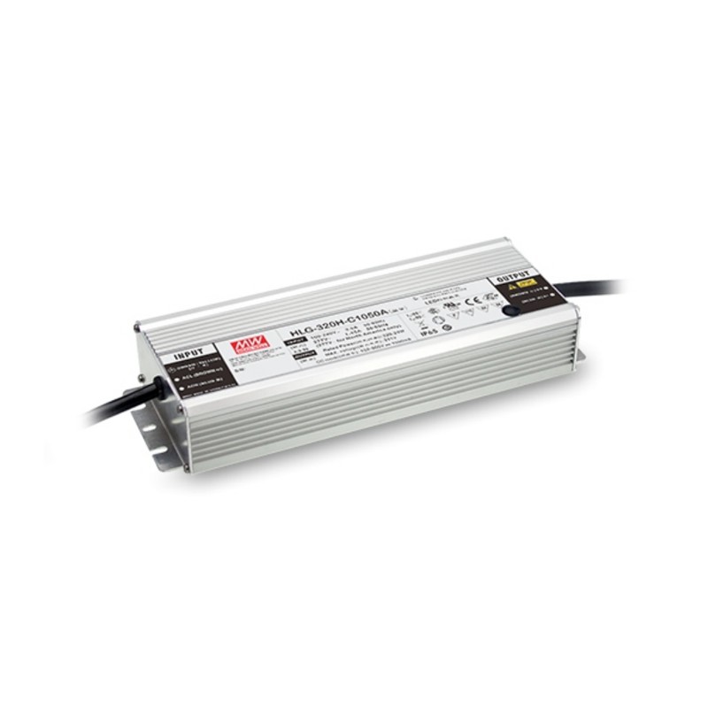 LED drivers in a metal housing (IP65) with 320W, a constant current, a potentiometer for adjusting the current limit and a 3 in 1 dimming function. These devices have a built-in active PFC function, a typical service life of >62.000h and are protected against overload (auto recovery), overtemperature, overvoltage as well as short circuit. They are suitable for LED lighting applications and comply with EN61347-1, EN61347-2-13, EN55015 as well as EN61000-3-2 class C. We offer the following types of this Mean Well series: HLG-320H-C700AB, HLG-320H-C1050AB, HLG-320H-C1400AB, HLG-320H-C1750AB, HLG-320H-C2100AB, HLG-320H-C2800AB and HLG-320H-C3500AB.