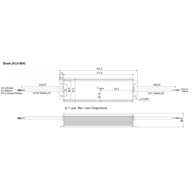 LED drivers in an aluminium housing (IP67) with a constant current, a constant voltage, 80W and a wide input range. These SELV compliant devices are protected against short circuit, overload (auto recovery), overvoltage as well as overtemperature and comply with EN61347-1, EN61347-2-13, EN55015 as well as EN61000-3-2 class C. They are suitable for LED lighting applications and have a built-in active PFC function. We offer the following types of this Mean Well series: HLG-80H-12, HLG-80H-15, HLG-80H-20, HLG-80H-24, HLG-80H-30, HLG-80H-36, HLG-80H-42, HLG-80H-48 and HLG-80H-54.