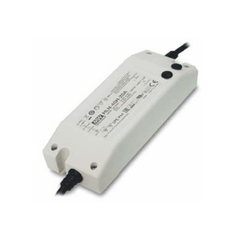 LED drivers in a plastic housing (IP64) with a constant current, 40W and a universal input. These devices are protected against short circuit, overcurrent, overvoltage as well as overtemperature and comply with EN61347-1, EN61347-2-12, EN61000-3-2 class C as well as EN55015. They are suitable for LED lightning applications and have a built-in active PFC function. The output current is adjustable through a 3 in 1 dimming function (1 to 10V DC, PWM signal, potentiometer). We offer the type HLN-40H-24B of this Mean Well series.
