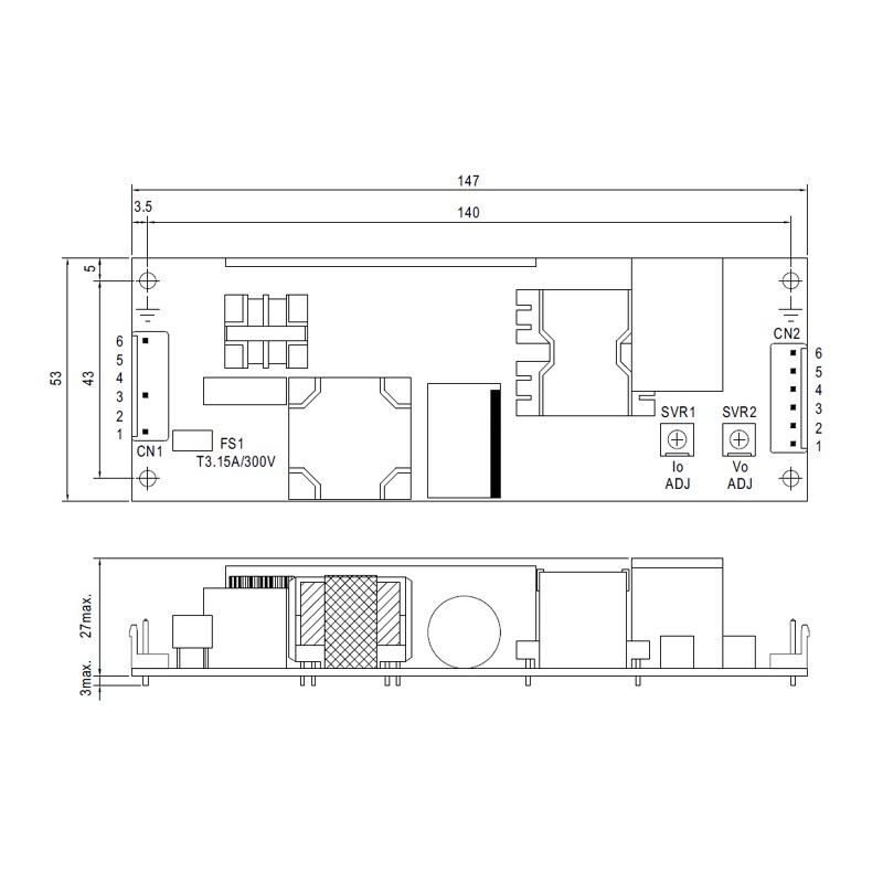 Open frame LED drivers with 60W, a universal input, a constant voltage/current and a 3 in 1 dimming function (1 to 10V DC, PWM, potentiometer). These devices have a built-in active PFC function, are suitable for LED lighting applications and are protected against overload (auto recovery), overvoltage as well as short circuit. They have both an adjustable output voltage and an adjustable output current and comply with EN61347-1, EN61347-2-13, EN55015 as well as EN61000-3-2 class C. We offer the following types of this Mean Well series: HLP-60H-15, HLP-60H-20, HLP-60H-24, HLP-60H-30, HLP-60H-36, HLP-60H-42, HLP-60H-48 and HLP-60H-54.